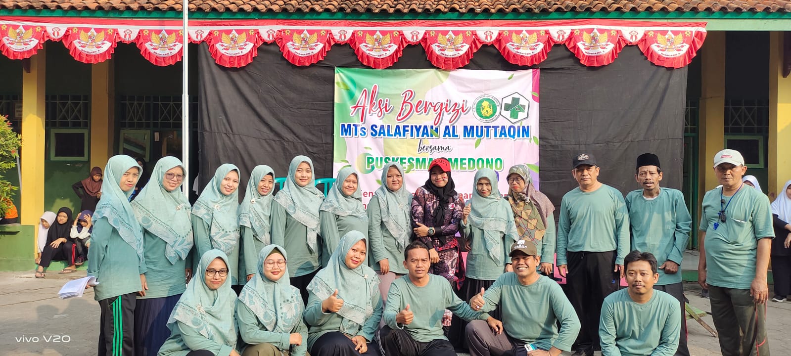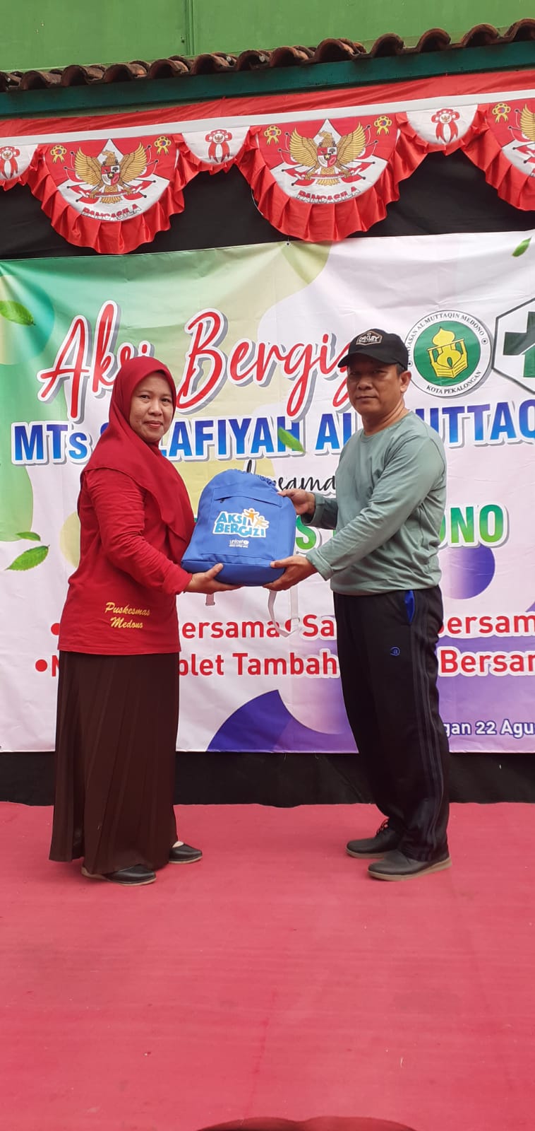Pada kesempatan ini turut hadir tiga orang perwakilan dari pihak Puskesmas Medono, yaitu Ibu Familya, Ibu Indah dan Bapak Riza. Ketiganya turut berbaur bersama guru dan peserta didik untuk ikut senam, sarapan dan minum tablet tambah darah bersama. Mereka menyatakan sangat senang sekali, karena ternyata warga MTs Salafiyah Al Muttaqin sangat antusias dalam menyambut kegiatan ini, sehingga suasananya menjadi lebih meriah. "Kami tidak menyangka kegiatan ini akan semeriah ini, semuanya sangat antusias, tidak salah kami memilih MTs Salafiyah Al Muttaqin untuk kegiatan ini", ungkap Ibu Familya. Masih menurut penuturan Ibu Familya, kegiatan aksi bergizi ini memang baru diadakan tahun ini. Pengadaannya pun hanya untuk 1 madrasah/ sekolah di tiap jenjangnya. Untuk jenjang SMP/MTs yang ada di bawah wilayah Puskesmas Medono, terpilih MTs Salafiyah Al Muttaqin.