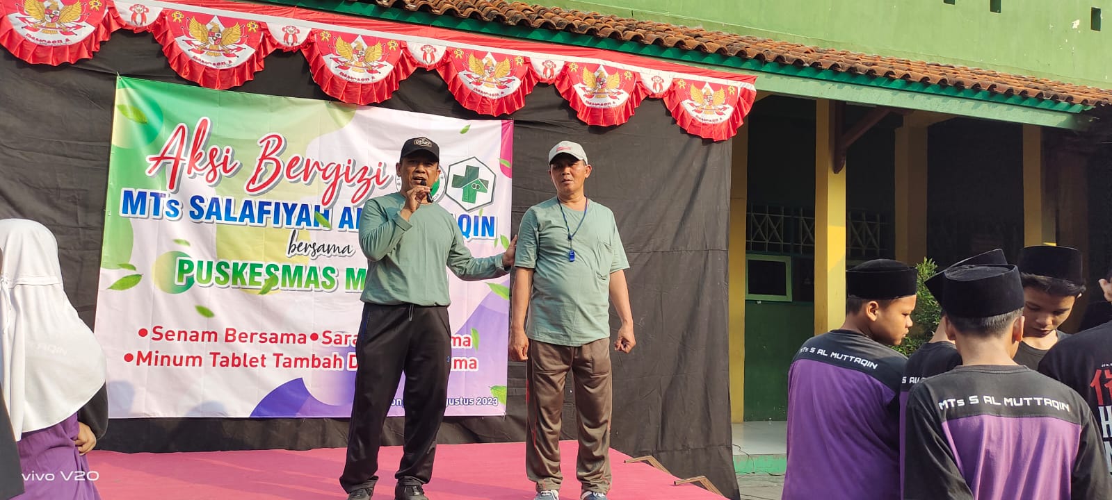 Baru-baru ini, tepatnya hari Selasa, tanggal 22 Agustus 2023 MTs Salafiyah Al Muttaqin berkolaborasi dengan Puskesmas Medono menggelar kegiatan AKSI BERGIZI di MTs Salafiyah Al Muttaqin. Adapun rangkaian kegiatan aksi bergizi ini meliputi: kegiatan senam bersama, sarapan bersama dan minum tablet tambah darah bersama. Untuk kegiatan senam dan sarapan bersama dilakukan oleh semua warga madrasah, baik peserta didik maupun guru dan karyawan. Sedangkan kegiatan minum tablet tambah darah hanya untuk peserta didik dan guru putri.