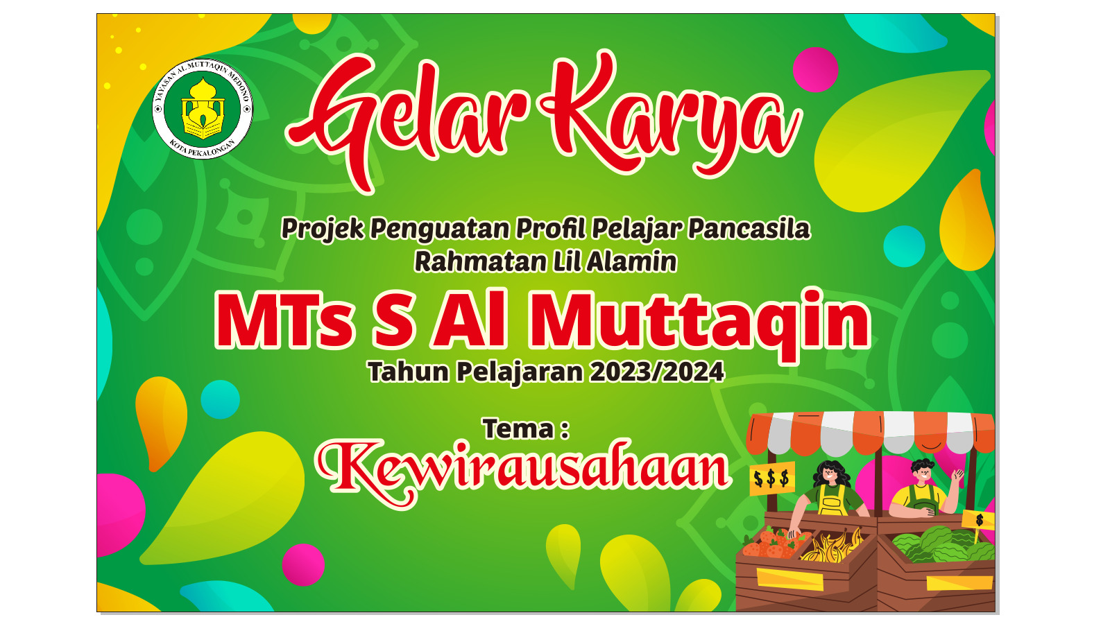 Pekalongan. Seiring diberlakukannya Kurikulum Merdeka untuk kelas 7 jenjang madrasah tsanawiyah, maka MTs Salafiyah Al Muttaqin menggelar kegiatan "Market Day" sebagai salah satu bentuk gelar karya dari pelaksanaan P5P2RA untuk tahun pelajaran 2023/2024 ini.