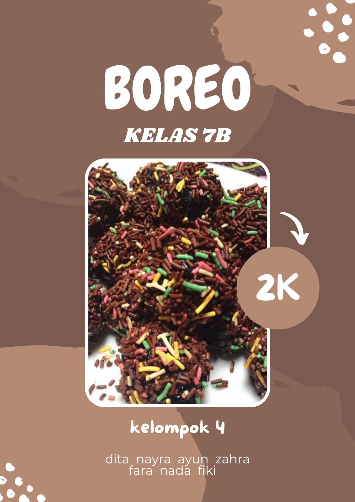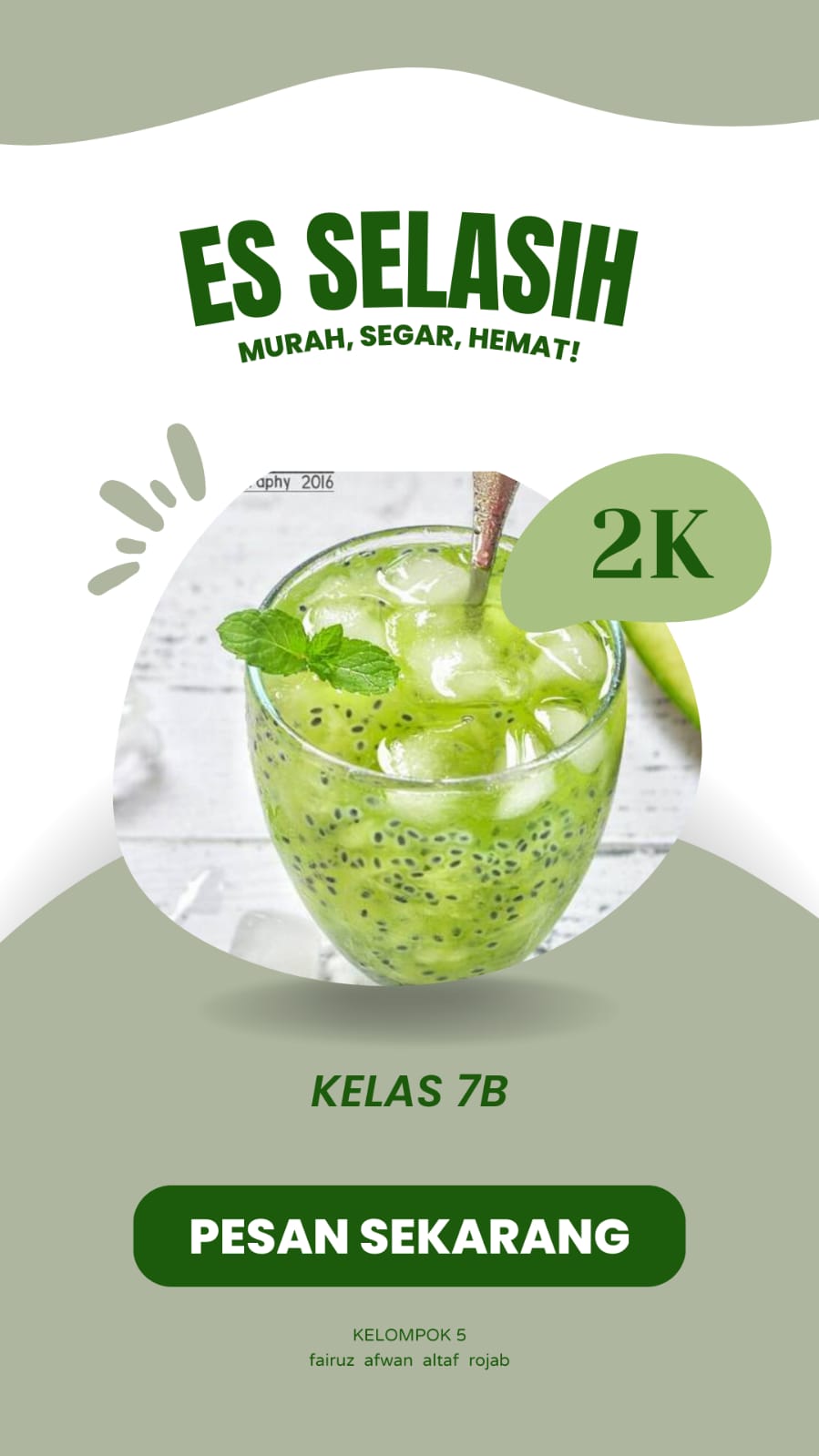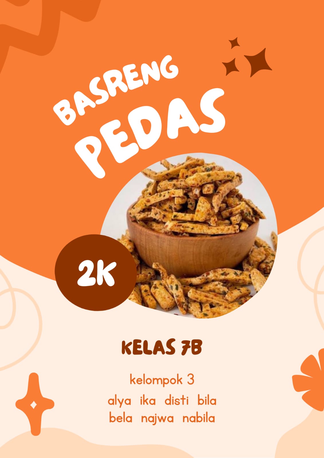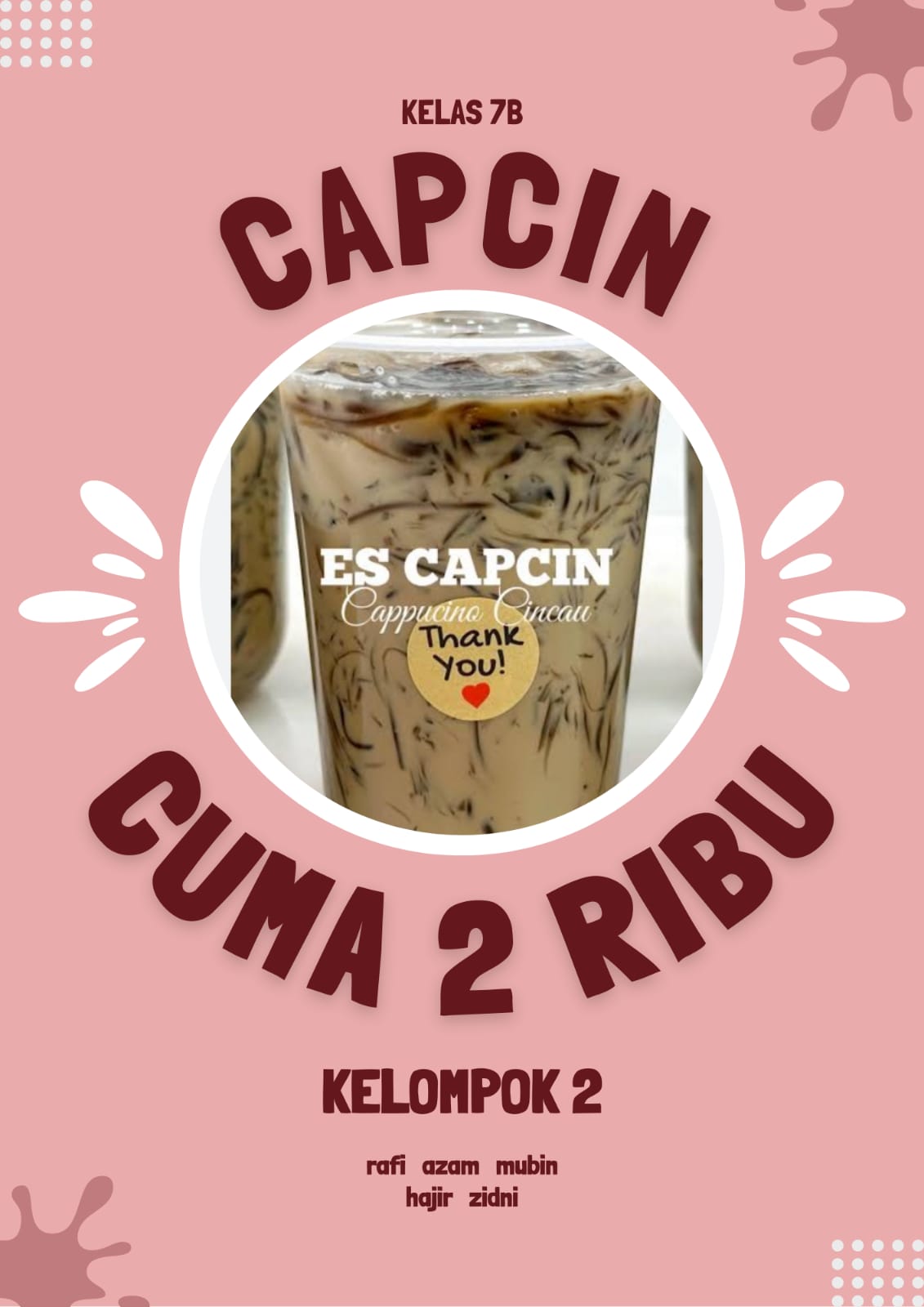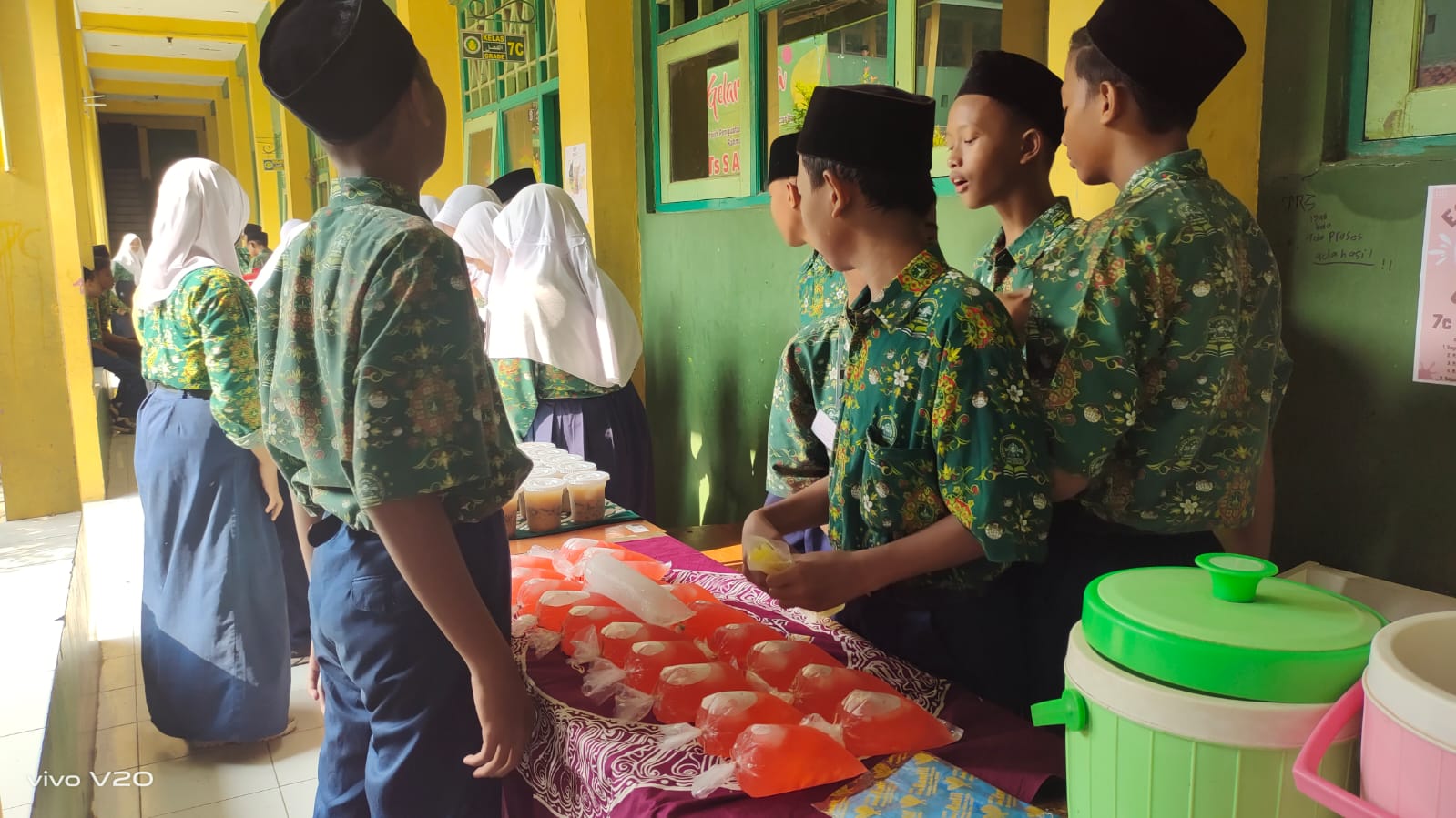 Kelas 7 sebagai pelaksana projek terdiri dari 3 kelas yaitu kelas 7a, 7b, dan 7c yang masing-masing kelas dibagi menjadi 6 kelompok yang membuat makanan dan minuman. Adapun sebagai pembeli adalah para peserta didik kelas 8, 9, para guru dan karyawan.